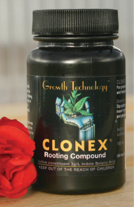 Clonex gel is a powerful, unique blend of rooting hormones, vitamins, minerals and antimicrobial agents. It is 500 times stronger than most powders. Clonex’s gel base instantly seals cut tissue and sticks to the stem throughout the rooting period, feeding and protecting the cutting. Full strength rooting hormones (3000 ppm) start the root formation, and vitamins protect the new roots. Mineral nutrients feed the young roots for accelerated growth, and antimicrobial agents protect against fungus and disease. Active ingredient Indole-3 Butyric Acid. 100 ml (3 oz).